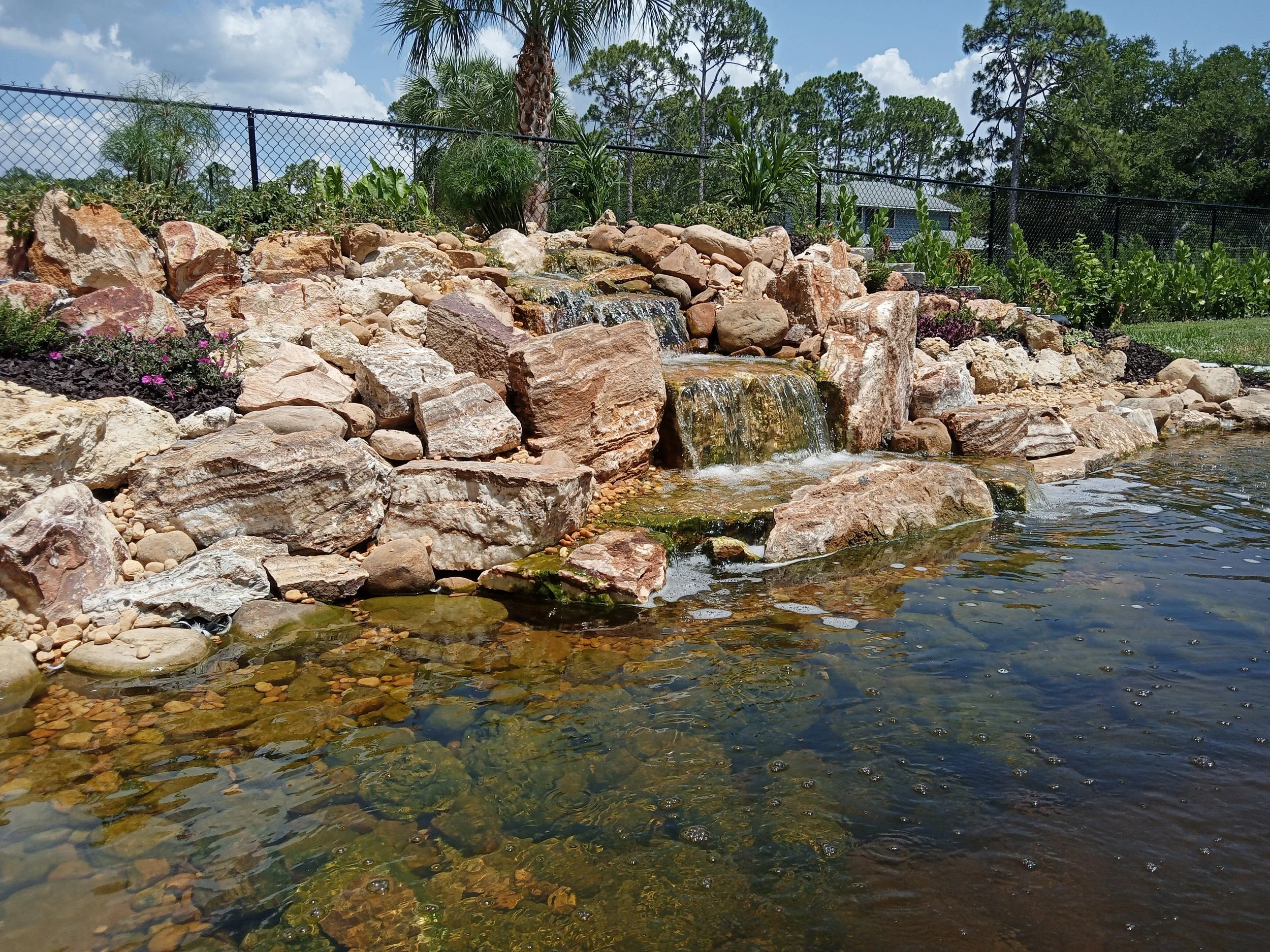 Want the sights and sounds of flowing water with low maintenance? A pondless waterfall is the perfect choice.